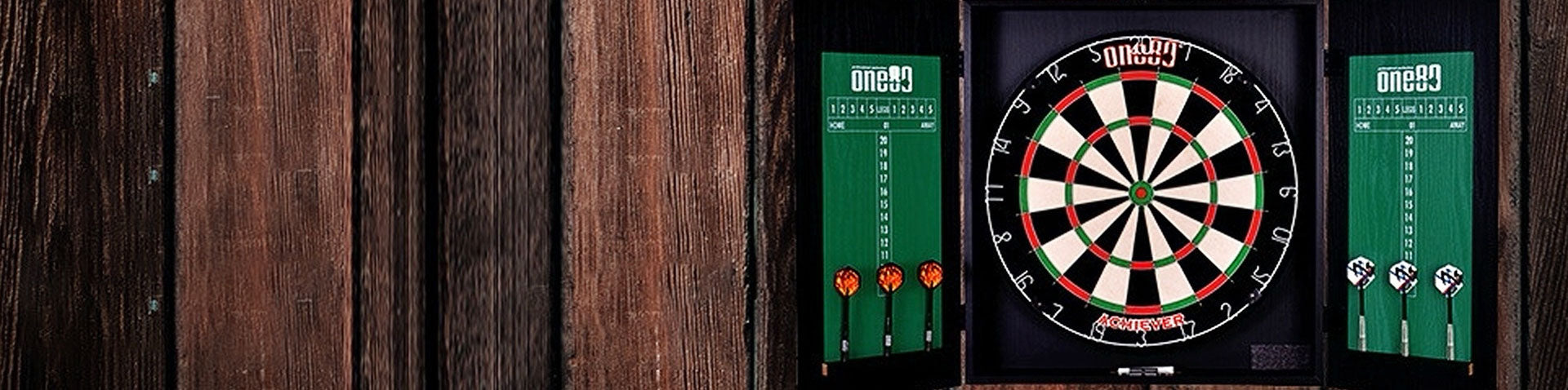 Achiever Black Wood Dartboard Cabinet Set with Darts + Dartboard + Scoreboard Combo